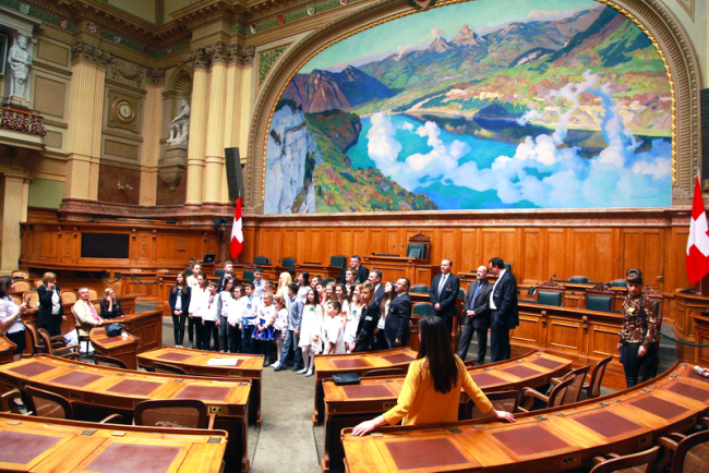 Учасники проекту «Діти за мир у всьому світі» в парламенті Швейцарії